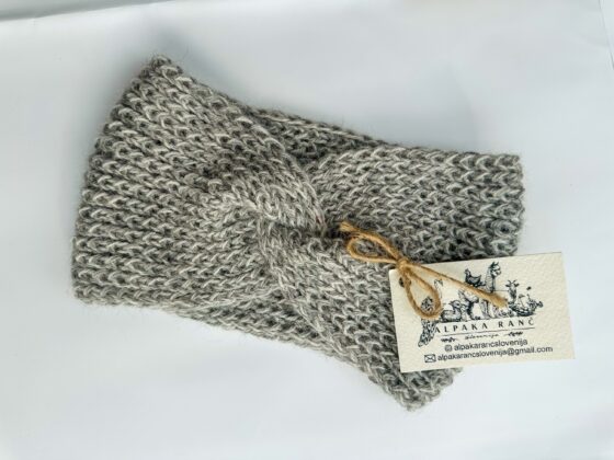 Zimski naglavni trak 100% baby alpaka – svetlo siva